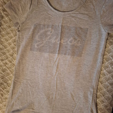 Hvit Guess T-skjorte med glitter stener i rød og svarte blomster. Størrelse S men passer også XS