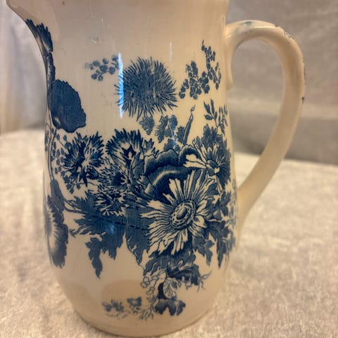 Fin gammel mugge fra Egersund Fajansefabrikk. høyden er 17 cm det er fint motiv på begge sider av mugga.