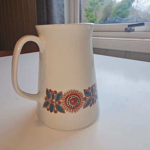 Fin melkemugge . Ingen hakk. Hvit og fin inne. Laget på Figgjo.