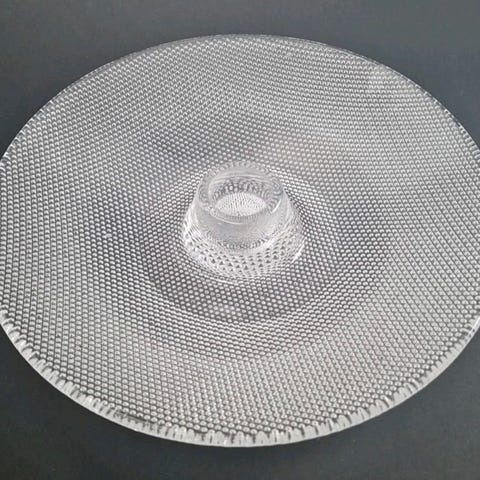 Kosta Boda Tulipa glassfat med en diameter på ca 19 cm. Fatet er laget av klart glass med et dekorativt tulipanmønster i rødt og grønt. Passer for servering eller som dekorasjon.
