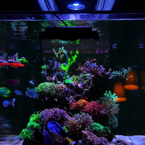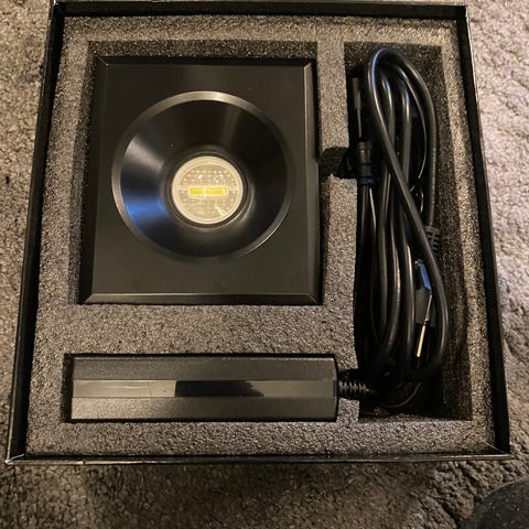 Selling two Ecotech Marine XR15 G6 Blue lights with diffusers and tank mounts. Used for 10 months, in excellent condition. No boxes, but I have the receipt from Coral Lab. Includes photos of the beautiful Acropora corals grown under these lights. Please note: the bottom of the arm mounts has some harmless coralline algae, as shown in the pictures.