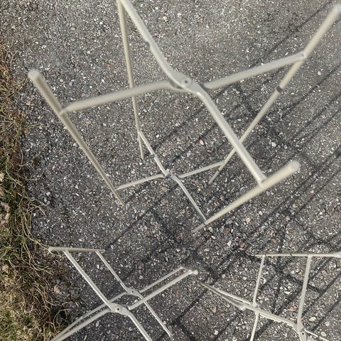 De to til venstre har hull i sete de 5 andre er hele.