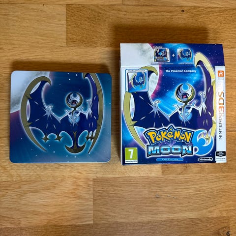 Pokemon Sun Steel Case og Fan Edition boks til Nintendo 3DS. Uten spill