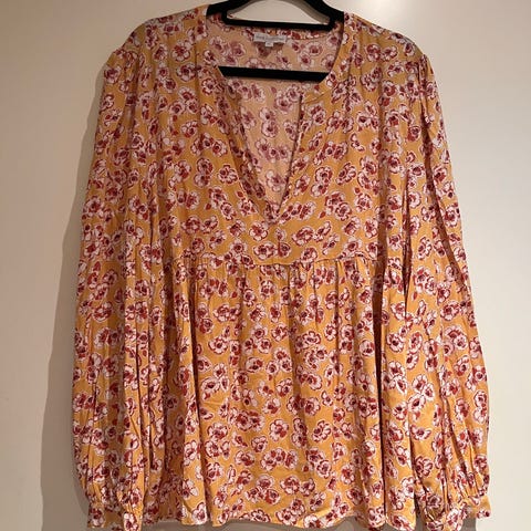 Bluse/topp fra Dea Kudibal i 97% viskose, 3% elastan. Modell Kami. Lengde målt bak er 74 cm og ua-ua er 65 cm x 2. 3/4 lange ermer. Kun brukt 2 ganger og framstår som ny.