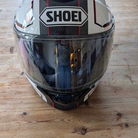 Panorama TC-10 - Sport Touring fra Shoei i hvit, rød og blå selges.