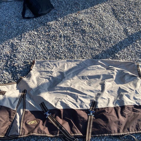 Dekkenet er godt brukt, men mye dekken igjen. Noe slitasje i front (se bilder) Er vasket, men blir ikke helt rent.