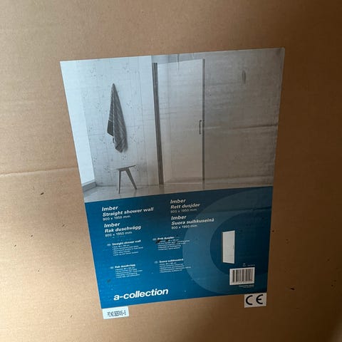 Ny dusjdør selges da den var 1 cm for høy for meg. 90 cm bredde og 225 cm høyde. 8 mm herdet glass med sorte hengsler. Skru rett i veggen, så er den klar til bruk. Bestilt hos glassmester.