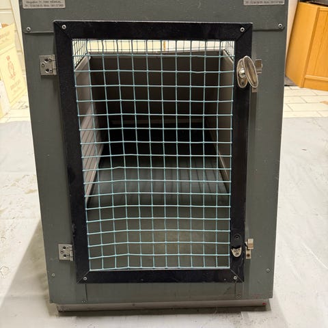 Trønderbur opprinnelig bestilt til en finsk lapphund opp til ca. 25 kg, brukt i hybrid med batteribakke bak og dermed utformingen.