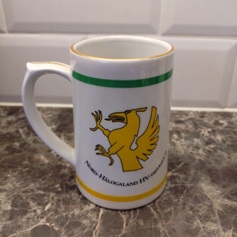 Flott Johan Thomsen-krus med dekor fra Longyearbyen. Laget hos Figgjoflint. Nr 60-20. Diameter 7,5cm og høyde 13cm. Ingen skader og lite slitasje.