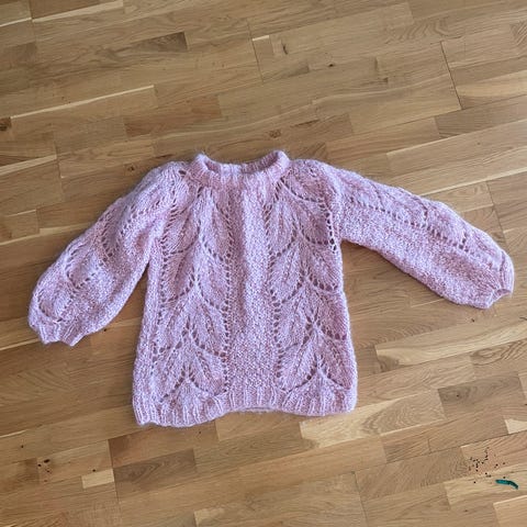 Fersk fra pinnen størrelse XS. Strikket i Air og kid silk.
