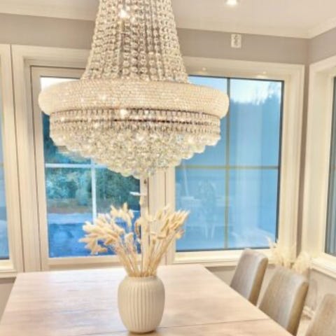 Nydelig lysekrone Designet av Tony Irving. Høyde 50 cm, 58 cm i diameter. Ny pris 10 399 kr