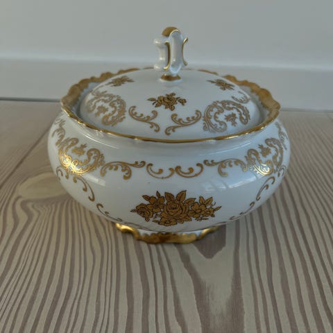 Feilfri liten sukkerkopp. Flott reliefmønster og gulldekor. Kan ikke se noe slitasje.