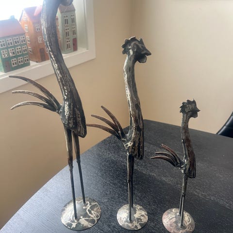 Kul metallfigur / fugl. Måler ca 30 cm × 23 cm. Solid og stødig.