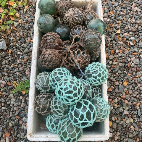 10 stk antikke garnkuler i flotte grønnfarger.