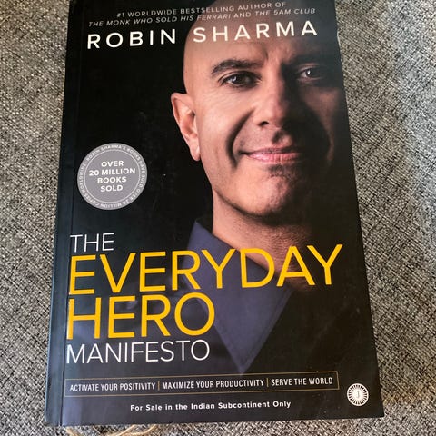 Robin Sharma The 5 AM Club Bok. Denne boken fokuserer på hvordan du kan forbedre dine morgenrutiner for å oppnå personlig og profesjonell suksess. Den gir innsikt i vaner og strategier for å maksimere produktivitet og velvære. Noen små merker på omslaget -se bilde.