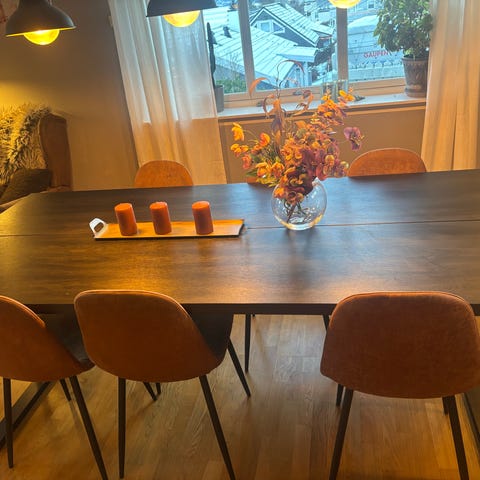 Pent brukt spisebord fra BoConcept med noen små bruksmerker selges billig. Med ekstraklaff er bordet 263cm langt