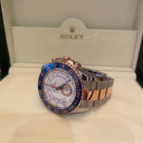 Selger en meget strøken Rolex Yacht-Master 126655 i rosegull og med oysterflex lenke.