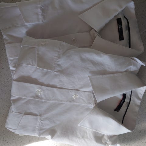 Selger mine to uniformsskjorter fra Selje ettersom min nye jobb ikke krever uniform.