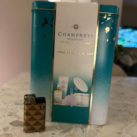 Uåpnet pakke med Bosy Scrub og Body Butter fra Champneys