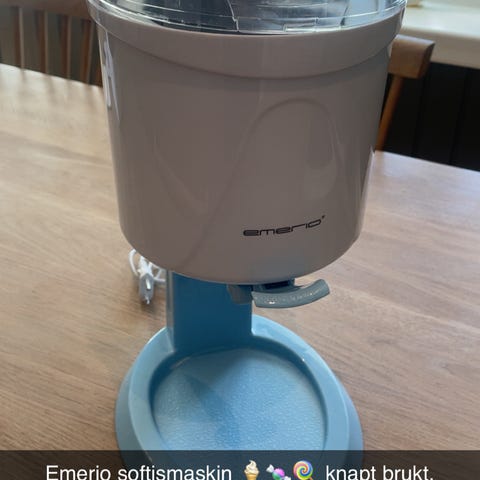 Softismaskin med merke Emerio. Brukt kun en gang, så ingen bruksmerker eller skader. Bruksanvisning med flere oppskrifter følger med.