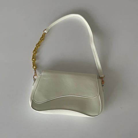 Det er to mørkere flekker på ene siden av vesken. De var der da jeg kjøpte den. Usikker på om det er ment å være sånn eller ikke. Uansett, fin veske. Ubrukt.