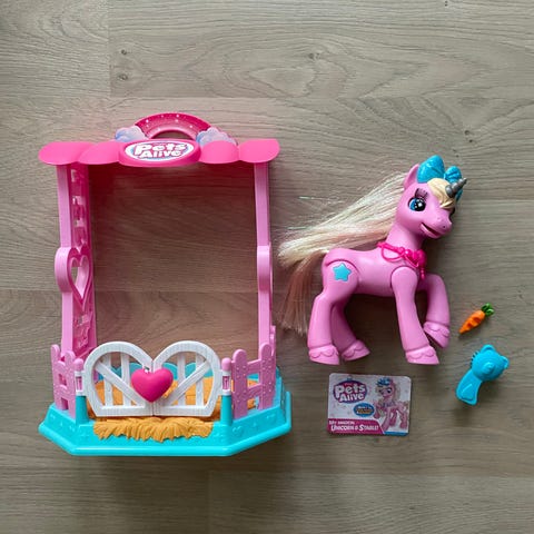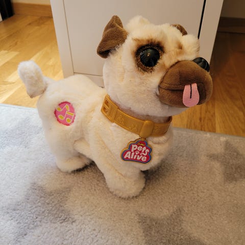 Hund selges. Kan lage lyd og kan mates med bein som følger med.
