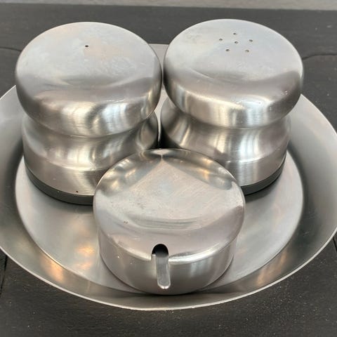 Elegant preget aluminium kryddergryte med skje - rustfri sukkerbolle til kjøkkensoppbevaring.