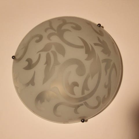 Fine klassiske taklamper, kjøpt hos Christiania Belysning. De to minste er: Ø = 20 cm, H = 29 cm. Glass og blank stål. 1stk som er større.