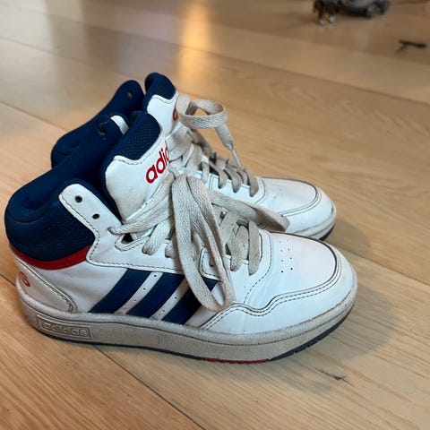 Pent brukte Adidas sko str.32. Følger med lisser med strikk og barnet ikke kan knyte lisser selv.