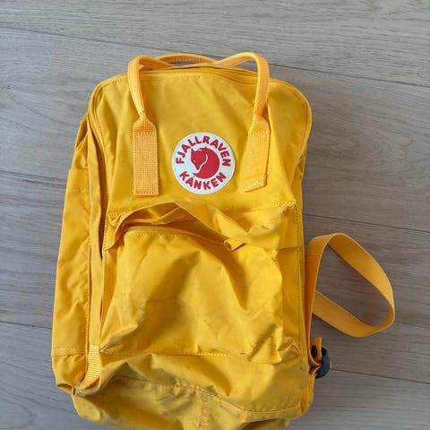 Selger en lite brukt sekk fra Fjällräven. Gul sekk med regnbuedetaljer. Kan hentes i Trondheim eller sendes.