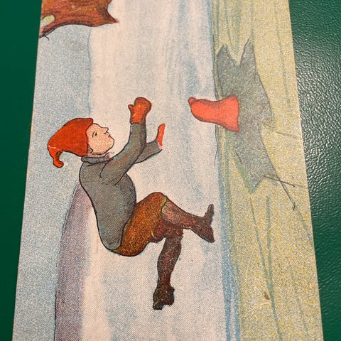 God Jul / Bjørn lue sykkel snø / Gunnar Bratlie Serie A 540/52 / Drøbak 19.12.53