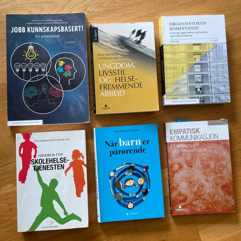 Pent brukte pensumbøker innenfor pedagogikk, yrkesfag og helse. Jeg har gått Yrkesfaglærer innenfor helse- og oppvekst.