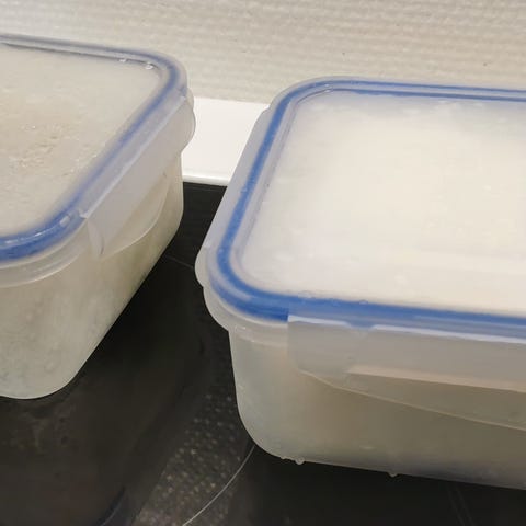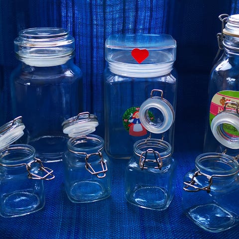 Selger 2 stk oppbevaringsskåler i glass med silikonlokk til 80 kr samlet pris