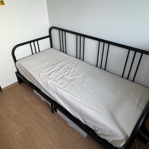 Kjøpe feil og innså ikke dette før prislappen var av. Flytter nå og har ikke plass til å ta med. Veldig typisk meg.. men bra kjøp for noen andre! Kommer med en dynetrekk som kosta 400?