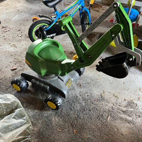 Selger vår Rolly Toys Kid John Deere + Kid Trailer. Mangler pinnen for å feste tilhengeren, men man kan bruke en hvilken som helst pinne til det
