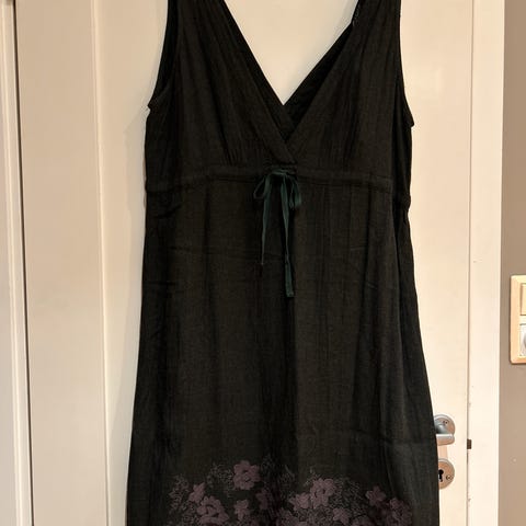 En flott grønn kjole, vaffelkjole med strikk i hele overdel fra brystet og nedover.