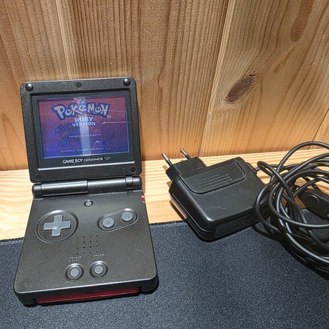 Jeg selger her en pent brukt Gameboy Advance SP(GBA SP) Mario Edition, Modell AGS-001. Konsollen er i forhold til alderen i god stand, men bruksmerker finnes så klart. På innsiden er den ganske strøken, ingen riper eller hairlines på skjermen. Vennligst se bilder som er en del av beskrivelsen. Skjermen, lys, lyd, alle knapper og batteriet fungerer utmerket. Det følger med original lader. Spillet følger ikke med!