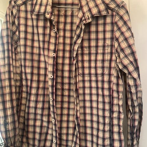 Super snygg skjorte som mannen min dessverre ikke går i. Masse flotte detaljer og den ble bare brukt få ganger. Nyprisen var 1400:-