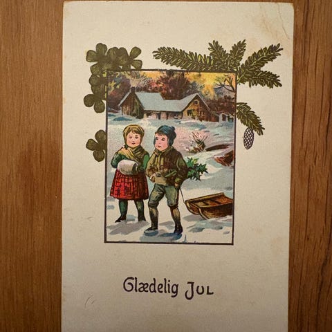 Barn nisselue bærer gris i tønne / God Jul / Mittet Serie 5353 / Oslo 21.12.53