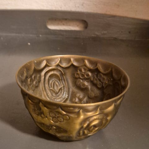 Kul skål, hjerteformet, metall, rustikk stil