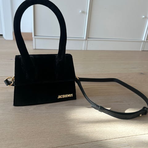 Lekker Jacquemus veske i lys lin (sand/creme). Gulldetaljer. Lang rem følger med.