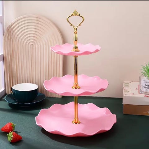 Sølvfarget kakestativ, tre-lags PP-materiale, elegant og moderne, egnet for bryllup, hoteller og selskaper.