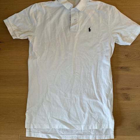 Selger en veldig pent brukt T-skjorte fra Polo Ralph Lauren i str. S. T-skjorten er blå i bunn og har gule og hvite striper.