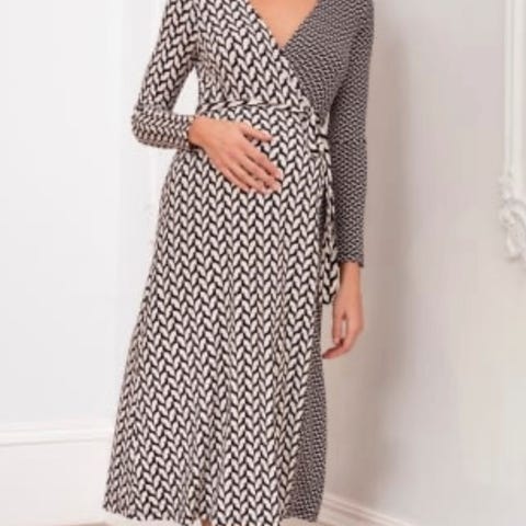 Trå inn i tidløs eleganse med vår Chic Mammatkjole i strikk, der komfort møter sofistikasjon for den moderne mammaen. Kjolen er designet med klassisk svart og hvit kontrast, og har en knappelukking foran med gulldetaljer som gir et raffinert uttrykk. Den myke strikkede overdelen gir akkurat passe stretch og støtte til en voksende mage, mens det plisserte skjørtet faller vakkert og gir god bevegelighet og komfort hele dagen. Perfekt til jobb, brunch eller en elegant kveld ute. Perfekt for amming også.