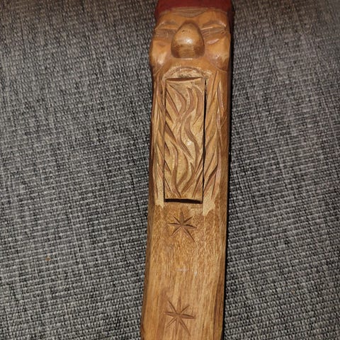 Gammel nøtteknekker i vakker og detaljert treskjæring. Funksjonell.