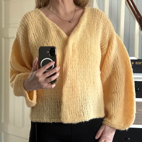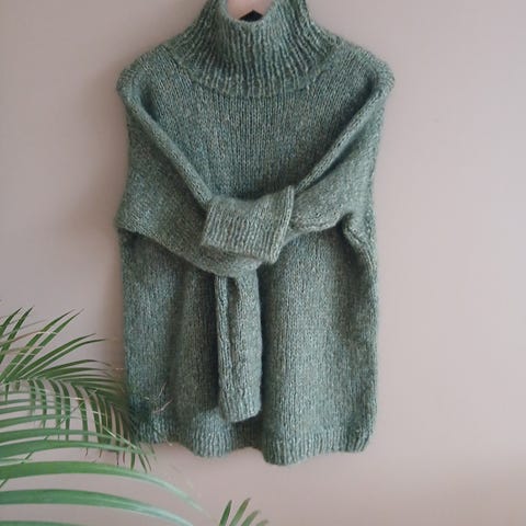 Selger en myk og varm hjemmestrikket genser i alpakka ull. Størrelse Medium. Nydelig gul farge💛🍂