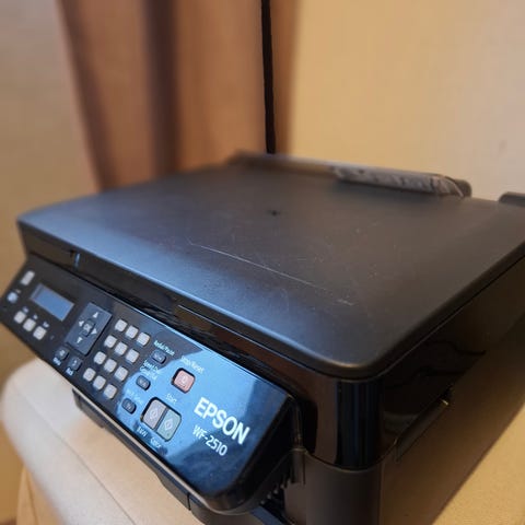 Multiprinter Epson WF-2510 med uåpnet blekkpatron og A4 ark