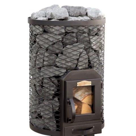 Det store steinmagasinet med plass til 30 kg stein gir gode badstubad.