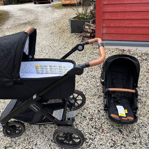 Vognen er kjøpt ny i 2021, og pent brukt til 2 barn. Aldri brukt som sovevogn i barnehage, og alltid oppbevart innendørs. Alltid brukt tisselaken og laken i liggedel, og for det meste vognpose eller underlag i sittedel.