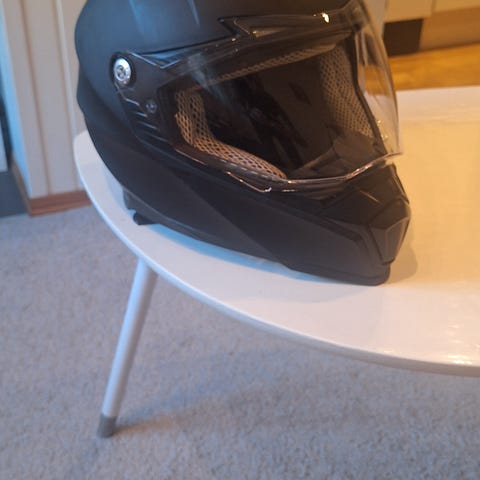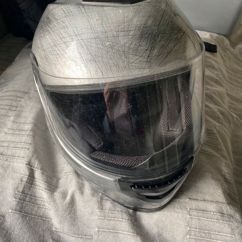 Pent brukt strøken mc hjelm,kjøpt ny hos LilleRolf's MC Shop ..frøkna endte med å droppe lett lappen og fikk kun brukt den på noen turer sittende bak med venn en håndfull ganger.